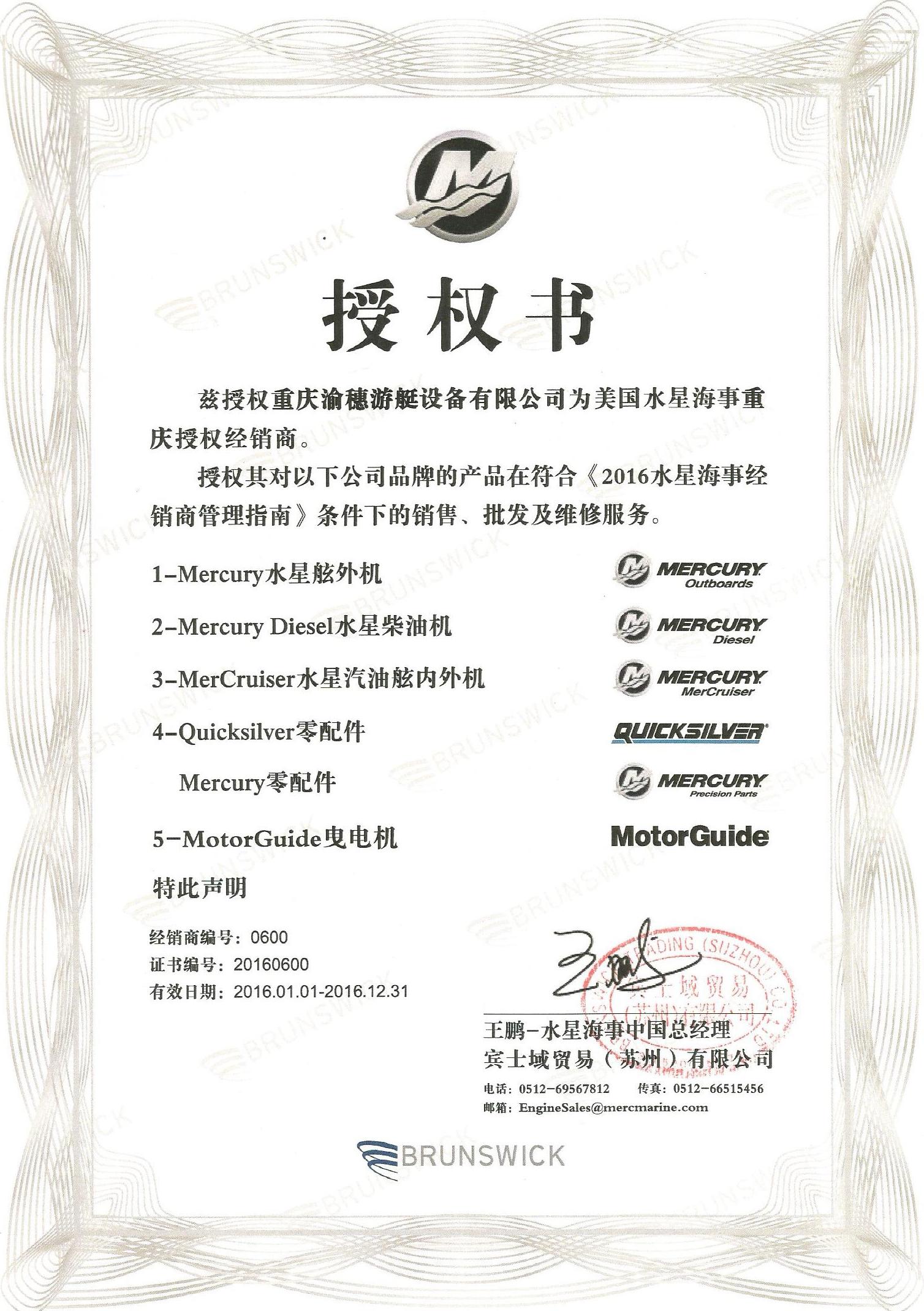 水星授權書